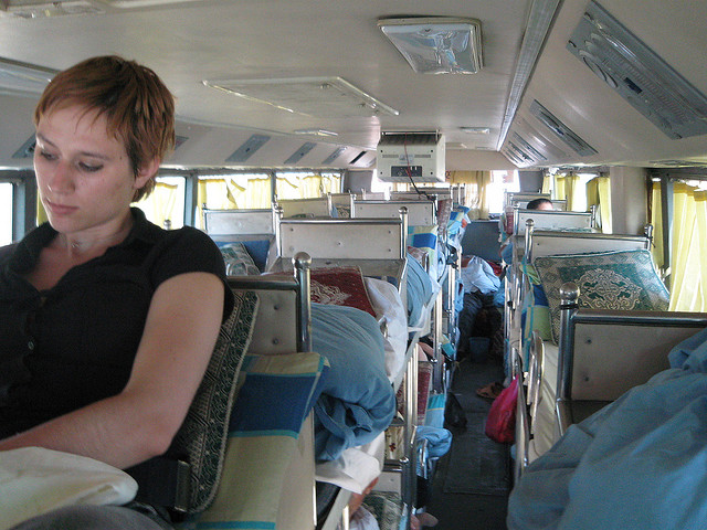 [Photo credits @ Flickr: oriolsalvador (hostel room), shok (sleeping bus)]